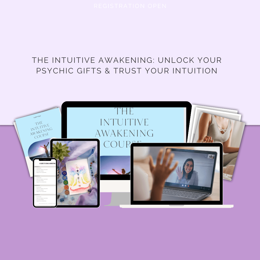 The Intuitive Awakening is a 5-week live coaching experience designed to take you from doubt & fear to total trust in your psychic abilities. No confusion. No overwhelm. Just a clear, step-by-step path to awakening your intuitive power